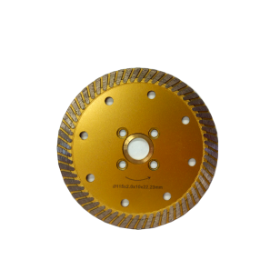 K.B. Diamond Gold Cobra economy turbo blade for granite and hard natural stone. Fast cutting, and aggresive for on-site adjustments. Fits on most 5" angle grinders. Made in Korea